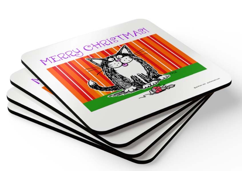 Enjoy your favorite drink and entertain your friends with these fun drink coasters! They feature a high-gloss finish and a cork-wood back to prevent sliding and protect your table. Start a collection. They make great gifts.